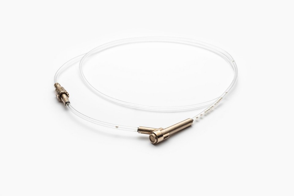Untitled Neckpiece #2, 2022. Bronze, IV tube, pearls, stainless steel. Collection of the artist.