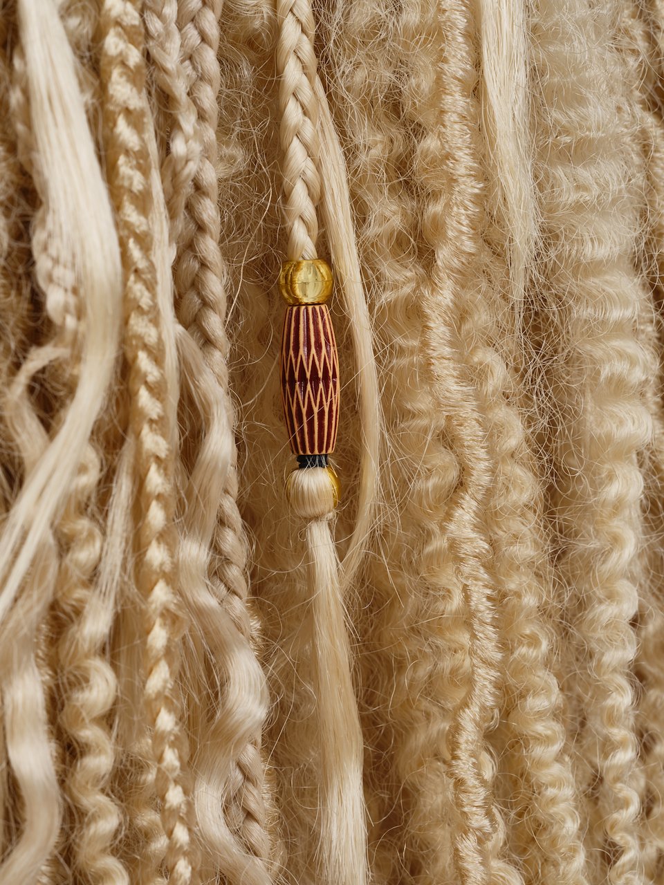 The Bond, 2023 (detail). Mixed media (fabric, Kanekalon [synthetic hair]). Photo: Rachel Topham Photography