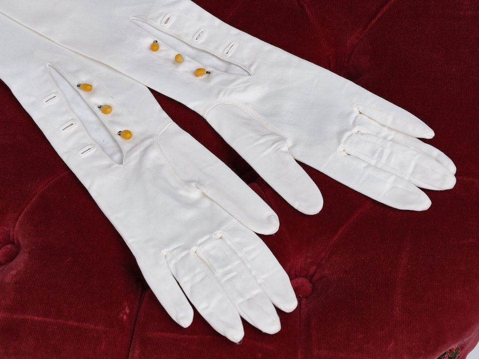 Gloves. Part of The Bond, 2023 installation (detail). Found gloves, dried corn, brass wire. Photo: Rachel Topham Photography